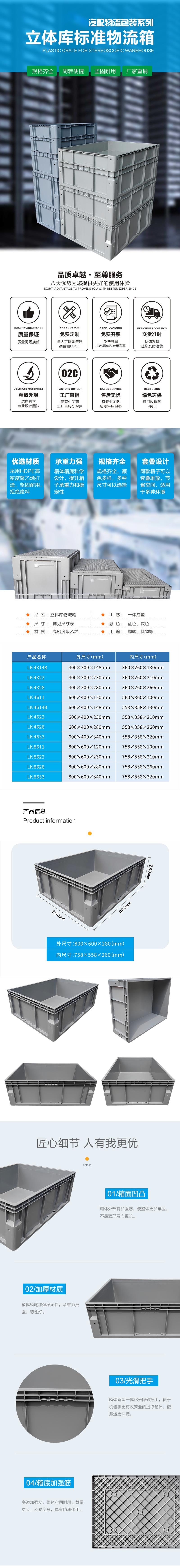 外尺寸:800*600*280mm 内尺寸:758*558*260mm 材质:PP 重量:4350g