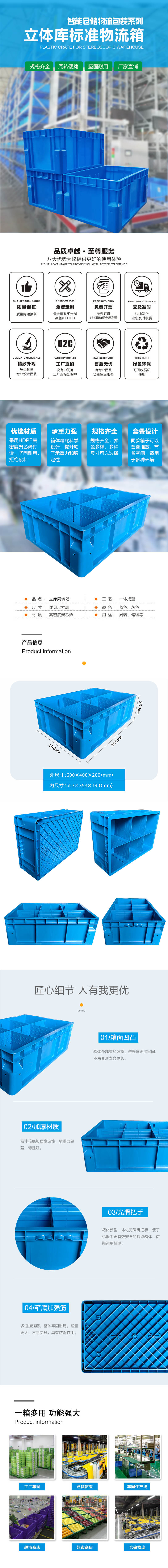 外尺寸:600*400*400mm 内尺寸:557*357*390mm 材质:PP料 重量:3500g